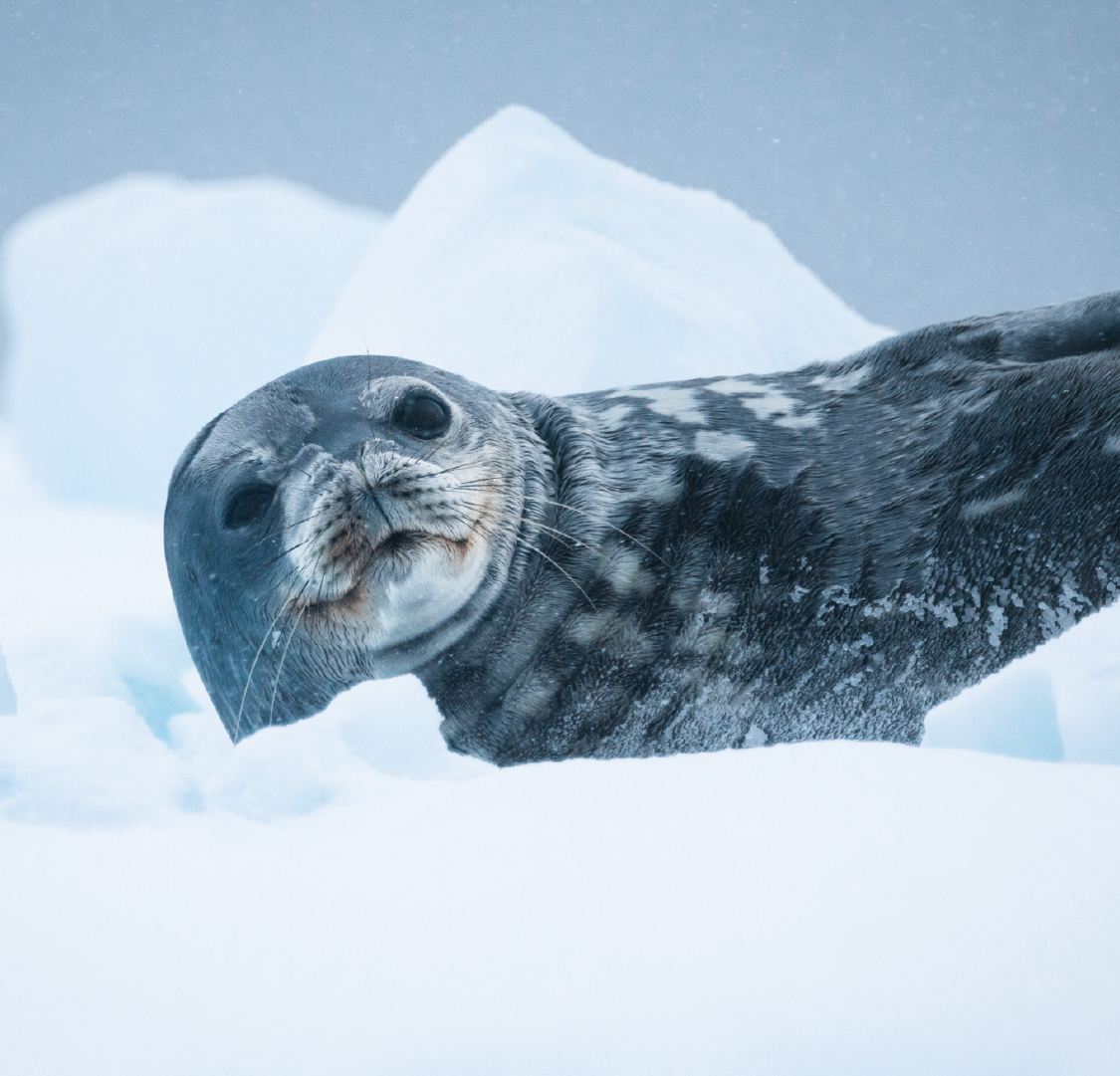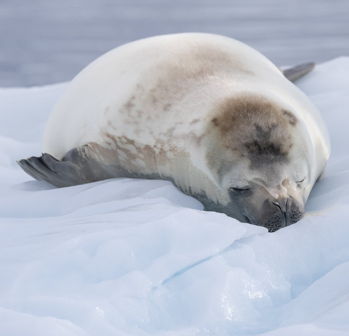 All six species have developed incredible adaptations that allow them to thrive in these extreme latitudes. Their sensitive “whiskers” allow them to detect movement in water and to scan where their prey is; their special dentition which has evolved according to their specific diet, and their natal pelage and blubber is essential for their survival.