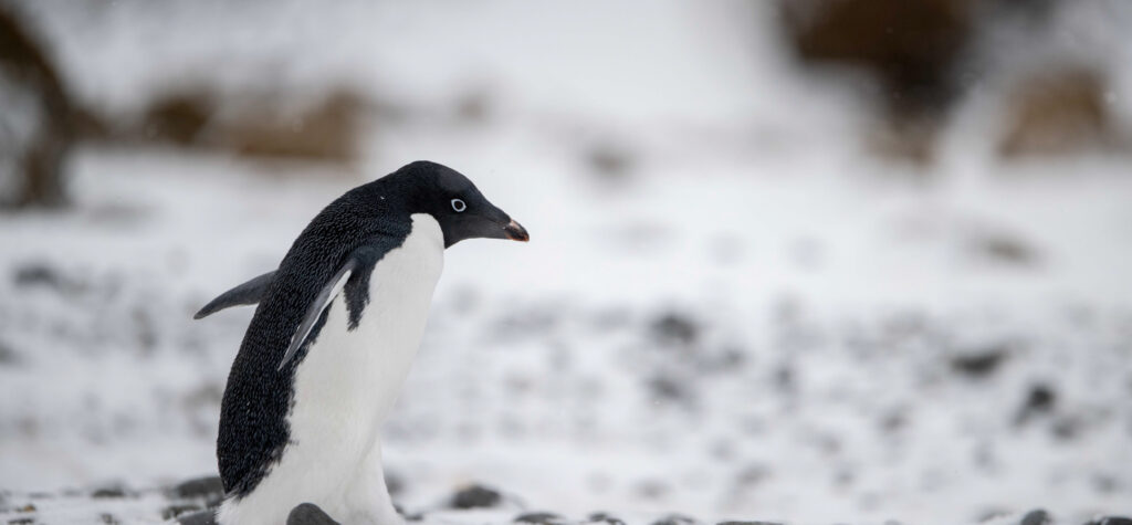 Third, and for me the best part, Adelie penguins! These penguins appear only in Antarctica and are one of the most common penguins found in the south of the Peninsula. They have a distinctive white ring around the blue eyes. They are small to medium-sized (about 50 cm tall). They feed mainly on shrimp, silverfish, squid and crustaceans.